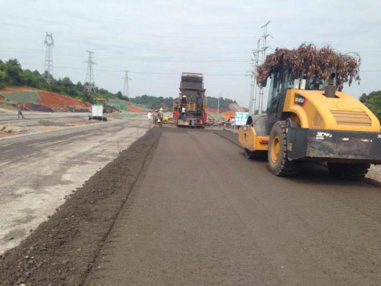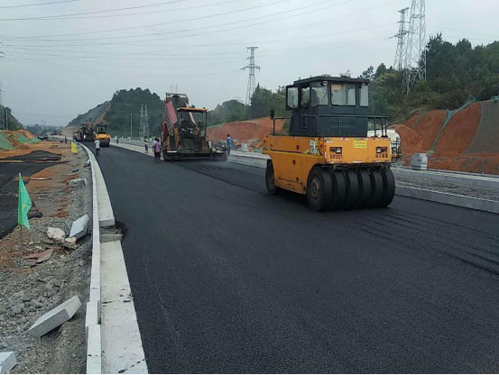 3、道路工程:K0+060~K2+040右幅機(jī)動車道已完成第一層瀝青攤鋪,左幅機(jī)動車道已完成240米第一層瀝青攤鋪,左右幅輔道水穩(wěn)攤鋪完成1800米